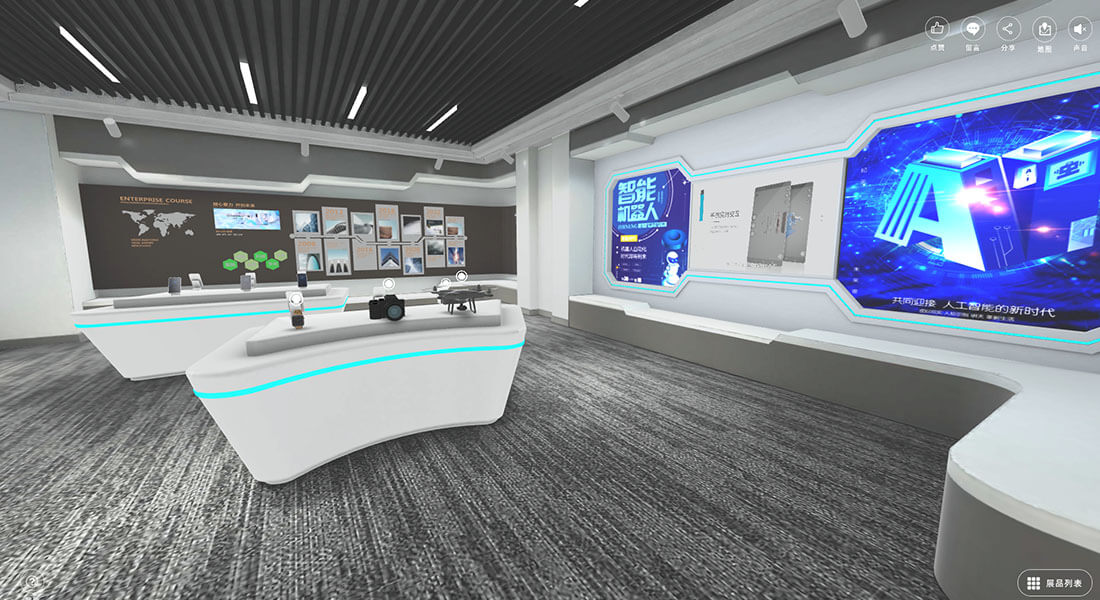 随着科学技术的不断进步,VR展厅的应用范围也越来越广泛:不仅可以实现场景还原、实境模拟、立体展示等传统展厅难以做到的表现形式,让人耳目一新;而且可以通过后台管理系统进行更新升级和数据统计,助推各行各业高速实现数字化转型的第一步沉浸漫游